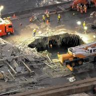 @papas063川崎の事故、職場出た瞬間に風が鬼のように強くて「そりゃ足場が崩れてもおかしくないわ」なんて思ってたけど、大穴開いてるやん... どうしたんだこれ...